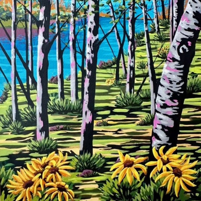 Nestled in Northwest Calgary, my husband and I are fortunate to call this beautiful area home. Right beyond our doorstep lies Bowmont Park, a sprawling haven with an intricate web of walking trails perfect for exploration. The park’s vibrant hues and shifting light play a profound role in shaping my artistic vision. Each stroll with our beloved Labrador, Clyde, reveals new palettes and textures—rustling golden leaves in the fall, the crisp blues of winter shadows, and the fresh greens of spring—that breathe life into my paintings, transforming simple walks into boundless creative inspiration.