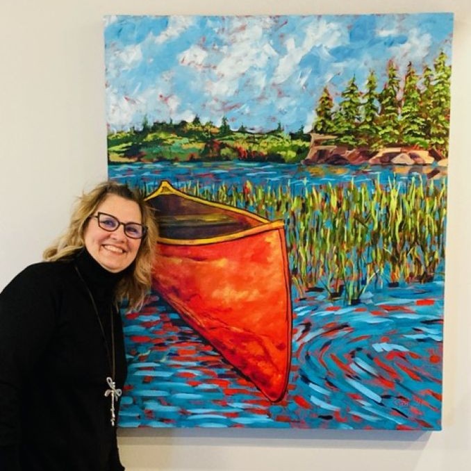 In my current series, “Red Canoes,” I explore more than just the vibrant hue of the canoes themselves. While red holds a special significance for me beyond being a favourite colour, it serves a deliberate purpose within each composition. My real focus lies in the dynamic relationship between the canoes and their surrounding environments. I am captivated by how light, gravity, and water interact, breathing life and movement into the scenes. The process of creating these paintings not only excites me but also sparks anticipation for future works, guiding my inspiration and shaping the direction of upcoming series.