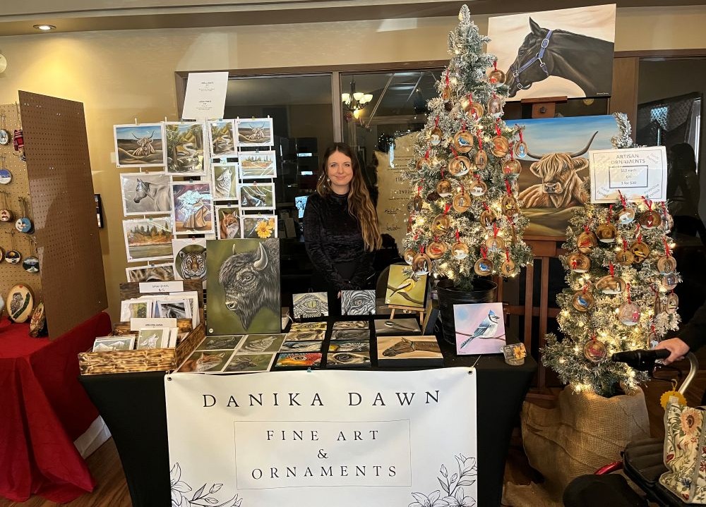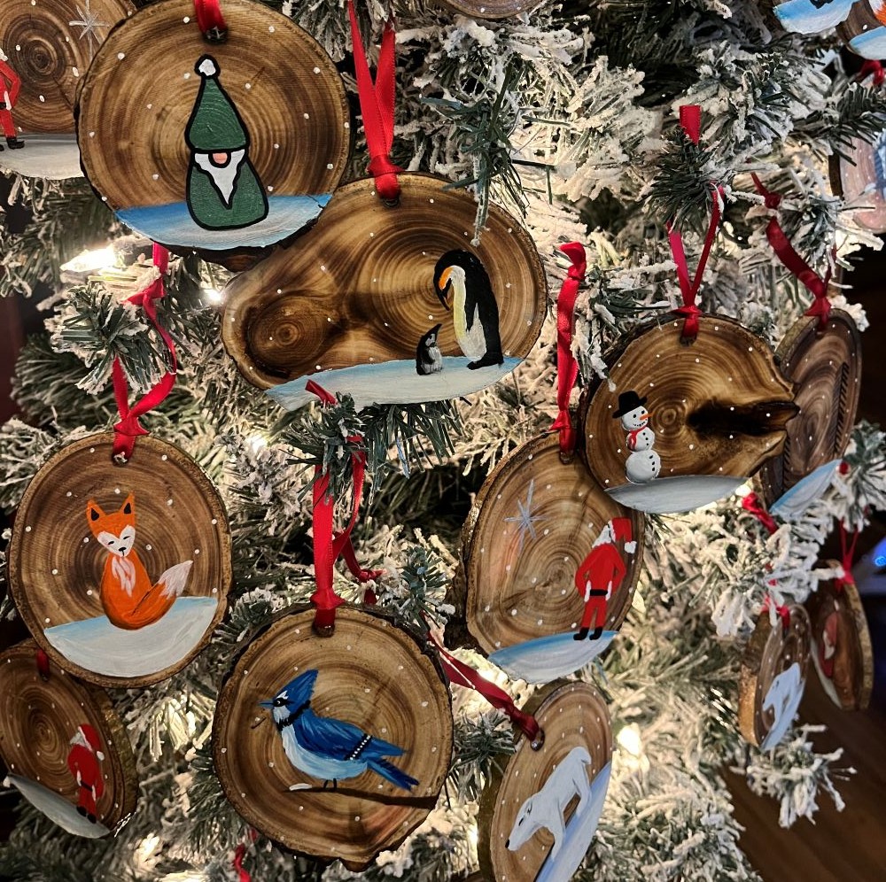 The holiday season is my busiest time of year. I am currently working on my oil paintings and hand-painted and wood-burned holiday ornaments that will be available this holiday season. All my ornaments are painted on locally sourced wood from Bragg Creek, AB. I am also currently working on a series of large wildlife oil paintings that will be released in 2026.