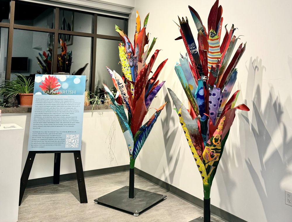 Now, 30 years after receiving her bachelor’s and master’s degrees in fine arts, a marriage, and one quick trip across the Atlantic, Lesley is still a creative powerhouse. Calling Canmore home for the past 25 years, Lesley’s growing portfolio of diverse public art has centred this mountain town that she fell in love with. Whether it’s a canoe that brings the community together or massive autumn leaves of wrought steel that reflect our remaining hope amidst a degrading environment.
