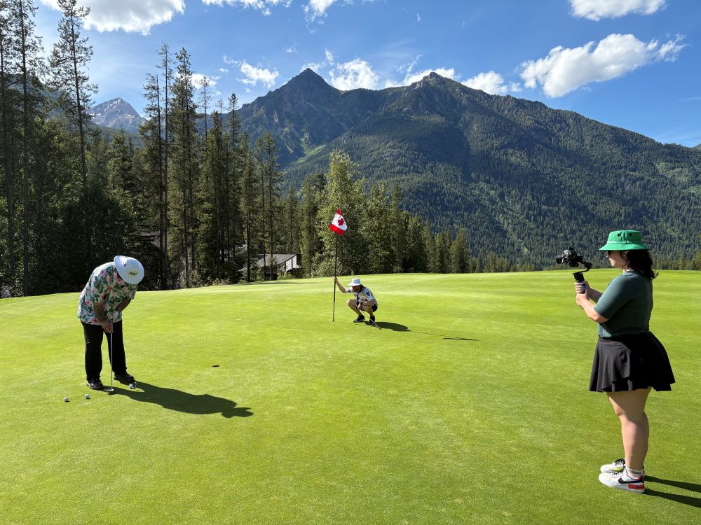 Marina working on a recent golf trip for All Tee’d Up, capturing on-course footage and behind-the-scenes moments. Photo by Eric Robbins.