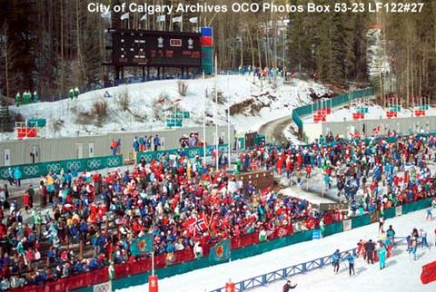 1988 – Lighting of the cauldron at the Canmore Nordic Centre.