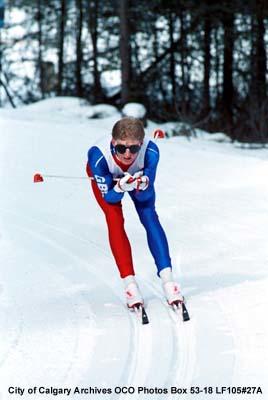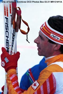 1988 – Pierre Harvey from Canada after finishing his race in the 15km cross-country ski competition.