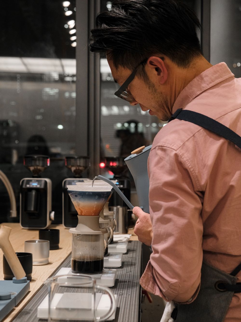I was very fortunate to experience a preview of Sought x Found’s coffee menu, during which Kitty and Caleb alternated in crafting a lineup of speciality pourovers and seasonal coffee beverages. Plus, we enjoyed two delicious hors d’oeuvres: a smoked salmon and a wild mushroom toast.