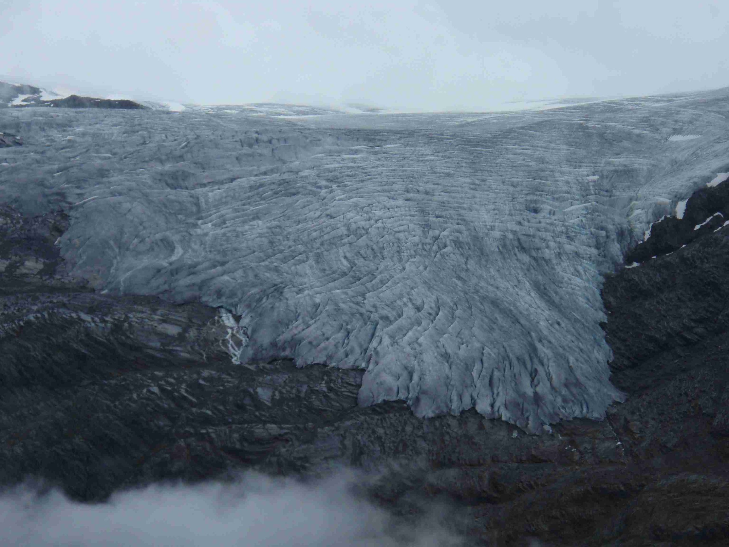 Coordinating field visits is one of the most challenging aspects of glacier monitoring. Each visit requires a minimum of three team members who have the required training and experience to safely travel on glaciers and carry out the monitoring work. Depending on the season and the travel conditions, at least one of the team members must be a certified ski guide or mountain guide. Often this work requires the use of a helicopter. Both the helicopter and qualified staff must be available on a day with clear visibility, little or no precipitation, and no thunderstorms. These conditions ensure the helicopter can fly safely to the upper glacier, located just below 3,000m in elevation. There are a lot of variables to consider!